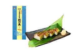 全国有数のさんまの水揚げを誇る千葉県銚子産のさんまを独自配合の味噌ダレで西京焼にし、おぼろ昆布で巻いたお寿司です。